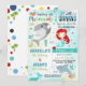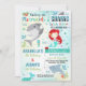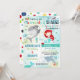 Convite de sereia tubarão projetado exclusivamente. Perfeito para a sua festa de sereia e tubarão!