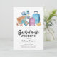 Convites de festa de solteira de férias fofos com uma seleção de itens de viagem em aquarela, incluindo malas, câmera, mapa, etc., e um modelo de festa de solteira elegante que é fácil de personalizar. O itinerário do fim de semana está no verso!