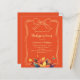 Um fundo cor de laranja abóbora. Decorado com folhas de outono e um laço desenhado à mão. Personalize e adicione os detalhes da festa.