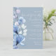 Este convite de jantar de noivas em azul poeira transparente com floral pode ser personalizado com suas informações em tipografia sofisticada e seu monograma no verso. Criado por Thisisnotme©