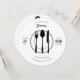 Convite de jantar redondo personalizado elegante com um fundo branco limpo e texto preto estiloso. Adornado com ilustrações encantadoras de uma colher, garfo, faca, prato e comida coberta ao fundo, perfeito para eventos sofisticados e reuniões especiais. Faça seu convite se destacar com este design refinado.