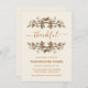 Convite Jante de Ação de Graças. Folhagem festiva de queda em motivo de aquarela com folhas e bolotas bonitinhas. Personalize com suas informações e texto personalizado.