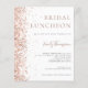 Uma alternativa de orçamento com bom custo-benefício em um tamanho menor 4,5 x 5,6” semi-brilho com 110lbs de peso, que tem uma espessura semelhante à de um cartão postal (no entanto, não é adequado para uso como cartão postal). POR FAVOR, OBSERVE que há UM convite por folha. Convite de Almoço de Noiva com Brilho Dourado Rosa com Orçamento. Uma borda de brilho dourado rosa está no lado esquerdo em ambos os lados e a tipografia moderna está alinhada à direita na frente, que você pode personalizar facilmente.