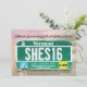 Uma adolescente fazendo 16 anos e conseguindo sua carteira de motorista é um marco para comemorar! Eu criei esta design para capturar a placa de licença do estado individual e colocá-la em cima de um fundo suave que inclui a rua, a estrada e o céu. Esta design resume rapidamente a sua comemoração de aniversário. É o ponto, mas numa design divertida que diz tudo. Sua adolescente está prestes a entrar na estrada!