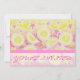 Frutado, gaseificado, doce e azedo... fatias de limão, bolhas e estrelas flutuam na limonada rosa. Convite de festa com um design personalizável rosa, amarelo, laranja e branco para você personalizar com seu próprio texto, imagens e ideias. Um desenho original a lápis colorido e tinta branca de Jess Perry.