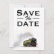 Convite de pôster de celebração de casamento noivado Salve a Data locomotiva antiga.