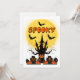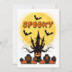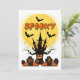 Este convite exibe a palavra "Assustador" em uma fonte de impressão única com letras laranjas, além de uma casa de árvore assustadora, lanternas de abóbora, morcegos e cemitério com outros adesivos de tema assustador neste tema e estilo de Halloween. Impresso em um papel clássico e versátil de 17,5 pt de espessura com acabamento fosco não revestido e textura de casca de ovo, feito e impresso nos EUA, com "Doce ou Travessura" impresso no verso.