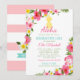 Celebre com estilo ensolarado usando este convite colorido de formatura de luau com o script “Aloha”, um acento de abacaxi e flores de hibisco brilhantes com folhagem tropical. Perfeito para uma festa na piscina ou luau no quintal. A parte de trás coordenada inclui listras rosa e branco com um conjunto floral correspondente e uma fita “Você é Convidado!”.