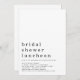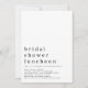 Convite de Lunchon de Chá de panela de Texto Minimalista. O cabeçalho é grande em na moda em minúsculas com os detalhes abaixo e muito espaço em branco no topo para uma sensação contemporânea. Personalize facilmente o texto para seus próprios detalhes.