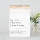 Convide Luncheon, Chá de panela Dourado e brilhante. Um tamanho maior de 5,5" x 8,5" a um preço orçamentário, em um STOCK CARD SEMI GLOSS de 110 lb, excelente de convites, aproximadamente na mesma espessura de um cartão postal, ou um estoque LINEN elegante de 110 lb - para um luxo, ligeiramente mais fino, com um valor de excelente. OBSERVE QUE OS ENVELOPES OPCIONAIS SÃO UM POUCO MAIORES EM TAMANHO A 6,75" x 9" aprox. Este alternativo de tamanho de orçamento também está disponível em outras opções de papel. O papel FELT de 100 lbs é colorido por buff, NÃO branco, então adiciona um toque rústico. O estoque de papel MATTE de 80 lb é branco brilhante, para impressão nítida, excelente para seus menus e programas, enquanto o papel SATIN de 80 lb é fino e leve, ideal para gabinetes. Uma borda de ouro falso brilhando em cada lado por um pequeno brilho. O cabeçalho da ocasião é grande em na moda com os detalhes na parte inferior. Personalize facilmente o texto para seus próprios detalhes.