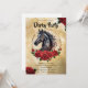 Organize um evento deslumbrante e inesquecível no Kentucky Derby com este convite impressionante, apresentando a silhueta majestosa de um cavalo preto emoldurada por um círculo dourado e rodeada por rosas vermelhas exuberantes. O fundo dourado brilhante adiciona um toque de magia e sofisticação, perfeito para uma gala noturna, uma festa de relógios de luxo ou um jantar sofisticado no Derby.