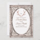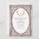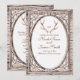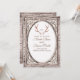 Convite de madeira branco com galhada rústica e brilho rosa. Personalize para qualquer evento.