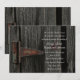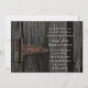 Este convite rústico do casamento é perfeito para casamentos da fazenda, do rancho, os ocidentais, ou do rodeio. Caracteriza uma foto de uma dobradiça velha em uma porta de celeiro de madeira. Madeira resistida cinzas, dobradiça marrom oxidada.