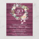 Com uma delicada guirlanda floral de aquarela em painéis de madeira rústica de fundo vermelho rubi, este convite de aniversário de casamento de 40 anos pode ser personalizado com as suas informações especiais de aniversário rubi. O verso apresenta uma guirlanda floral correspondente emoldurando as datas do seu aniversário em texto branco elegante em painéis de madeira vermelha rubi de fundo. Concebido por Thisisnotme