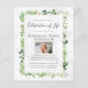 Este convite de celebração de vida com seu verde de eucalipto aquarelado pode ser personalizado com detalhes do evento. A fotografia é para fins ilustrativos e pode ser alterada para uma de sua escolha.