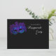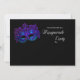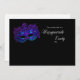 Máscara púrpura e azul no convite da festa de fundo preto.