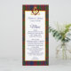 Este cardápio de casamento escocês Clan MacDonald tartan, xadrez colorida, tem gráficos de um nó celta de ouro e coração vermelho, acima de uma área de texto branco. Personalize o texto do costume azul para o seu casamento em terras altas. Os produtos correspondentes estão disponíveis.
