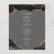 Menu de Casamento Preto e Dourado Falso Glitter Ágata. Falsas estrias de pedra glitter dourada. Fonte script destaca com fonte serifada fácil de ler. Fácil de ajustar para as necessidades do seu casamento. Faça seu próprio menu, use seu próprio texto para criar um evento elegante, porém barato e acessível. Fácil de personalizar. Folhas de papel de menu personalizadas.