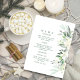 Convite de Menu Floral Branco de Folhagem Moderna.
