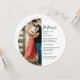 Este design único e em forma de placa complementa lindamente a sua decoração mesa, criando uma experiência de jantar elegante e memorável para os seus convidados. A frente do menu apresenta uma foto bem posicionada em um design de meia lua, enquadrando perfeitamente suas ofertas culinárias enquanto adiciona um toque pessoal a cada lugar. No verso, inclua outra foto favorita ou uma obrigado sincera que você envia, fazer cada menu uma mangueira carinhosa do seu dia especial. Personalizável para combinar o seu tema de casamento, este menu redondo combina perfeitamente a funcionalidade com o apelo estético, garantindo que os seus convidados desfrutem não só de uma refeição deliciosa, mas também de uma apresentação visualmente cativante. Torne a sua recepção de casamento realmente inesquecível com este menu de definição de lugar refinado.