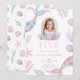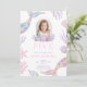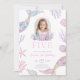 Convite de aniversário de 5 anos com foto de sereia cauda de sereia rosa roxo quinto 5 brilho glitter tema pastel Z8 editável