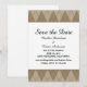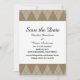 Anúncio clássico e elegante de Argyle para Salvar a Data com um simples padrão de argyle de diamante marrom claro no fundo. Fácil de personalizar com os detalhes do seu casamento. Para mais opções de personalização, clique no botão Personalizar.
