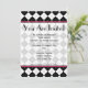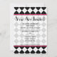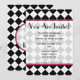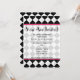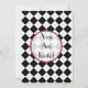 Um convite com um fundo xadrez preto e branco com acabamento rosa quente. O lado oposto apresenta uma moldura circular rosa correspondente com o texto "Você Foi Convidado". Personalize o texto com detalhes da sua ocasião.