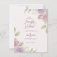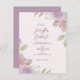 Convite de casamento de moldura de canto de rosas em tons de roxo suave e bege.