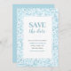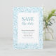 Convite de salve a data em um padrão de mosaico azul aqua.
