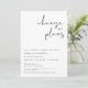 Este convite de mudança de planos de casamento apresenta uma fonte manuscrita ousada e um design minimalista moderno. Edite *a maioria das palavras*. Todas as cores são editáveis para atender às suas necessidades. Adicione facilmente sua própria foto no verso para um toque pessoal único.