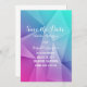 Anúncio de casamento Sharp e moderno em Jewel Tones com um fundo geométrico triangular funky multicolorido (azul, roxo, rosa e turquesa). Este design chique e simples é uma escolha única para anunciar um casamento moderno. Fácil de personalizar com os detalhes do seu casamento. Clique em "Personalizar" para encontrar mais opções de personalização.