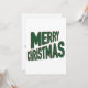 Este convite exibe as palavras "Feliz Natal" em uma fonte negrito com letras verdes e contorno vermelho com letras de tamanhos diferentes ao fundo neste tema e estilo de Natal. Impresso em um papel clássico e versátil com 17,5 pt de espessura e acabamento fosco não revestido com textura de casca de ovo, fabricado e impresso nos EUA com "Feliz Natal" impresso no verso.