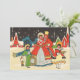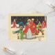 Ilustração vintage estilo vitoriano de Feliz Natal, apresentando uma família cantando em uma noite fria de inverno com uma pequena cidade encantadora ao fundo. Esta vila pitoresca tem casas com fumaça saindo das chaminés, neve no chão e estrelas no céu. Quase se pode ouvir a música de Noite Feliz. A mãe segura o livro de canções enquanto o pai canta por cima do ombro dela e as crianças musicais estão de cada lado deles.