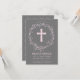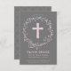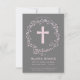 O elegante e moderno batismo ou convite batizante apresenta uma cruz rosa e uma coroa floral. Tem uma design feminina bonito e pode ser personalizada para a ocasião religiosa especial do seu bebê.