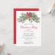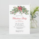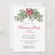 Convite de Natal A festa de Natal convida com a cor da água as bagas de inverno, a flor da poinsettia, o pinheiro e as folhas e um vermelho.