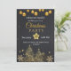 É Natal, vamos convida seus amigos e suas famílias, este convite tem uma cor ouro brilhante e um fundo escuro decorado com ouros e decorações de Natal, além das estrelas.
