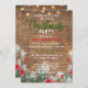 Design de convite de festa de Natal corporativo personalizado com folhagens de inverno e luzes de corda em um fundo de madeira de celeiro. O texto é totalmente personalizável. Para alterá-lo, use a opção Personalizar. Para mais alterações, como alterações na fonte, cor da fonte ou layout do texto, use a opção de ferramenta Editar design.