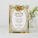Ouro Flores Poinsettia, joias trocadas e outros sotaques elegantes fazem sobressair este convite festivo. Correspondência entre Pointsettia e joias sobre fundo dourado gravado na parte traseira da placa. As áreas de texto estão prontas para você personalizar com as informações de Feriado.