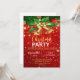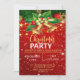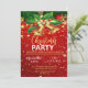 Convite de festas de Natal vermelho, formidável, com ouro de sinos de Natal e vinho sobre fundo vermelho e cinzas douradas.