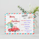 Feliz de natal convite de festas convite de Natal. Coma, beba e seja feliz com este convite de Natal do Cartão-Postal com Snowman em caminhão vermelho com a árvore de Natal. Basta editar este modelo fácil de usar no menu Personalização para torná-lo especial.