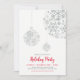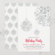 Celebre a temporada com este convite de festa de Natal. Este design apresenta belos enfeites de bola de flocos de neve com um tema de cores vermelho e prata.