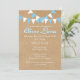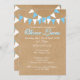 BEBÊ BUNTING BLUE BAPTISM CHRISTENING CONVITE. Este bonito batismo, batismo rústico, batizante ou primeiro convite para comunhão apresenta um fundo estilo kraft-paper, bunting azul e branco e uma linda caligrafia com uma sombra azul. O reverso apresenta linhas de revestimento azul e branco em um plano de fundo estilo kraft-paper. Projetado pela Pure Piglet© em www.zazzle.com/purepiglet*.