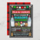 O convite de Natal do miúdo! Incrível e Festivo, este convite de festas de Natal MILK & COOKIES é excelente para festas de férias festivas e divertidas e Festas de aniversário de Natal para crianças! O Convite apresenta gráficos de férias divertidos e festivos em um fundo de quadro falso com uma borda de xadrez.
