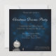 Uma elegante Ilustração de Natal: uma bola de Natal prateada e pérolas brancas sobre um fundo azul escuro de boque. Envelope correspondente para este Convite: