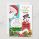 Esta Papai noel adorável está a espreitar à volta deste convite de festas de Natal, acenando a todos os seus convidados para se juntarem à vossa festa de férias. Um adorável, fofo, congelado, o boneco de neve tem um sinal anunciando a data da festa