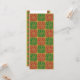 Modelo de convite de férias vermelho e verde com um padrão elegante de flur de lis restaurado a partir de azulejos antigos sobre fundo de ouro.