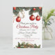 Nosso cartão de convite reflete o espírito desta época festiva. Ele é adornado com uma imagem clássica de enfeite de Natal, apresentando um galho de Natal lindamente decorado no topo. O galho é embelezado com bolhas vermelhas que adicionam um toque de charme festivo. Na parte inferior do cartão, você encontrará outro galho de árvore de Natal, adornado com luzes cintilantes e enfeites, adicionando ao clima festivo geral.