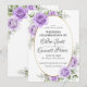 Convite de Noiva com Rosa Roxa Claro e Borda Doura