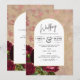 Lindas rosas vermelhas profundas destacam-se neste convite de casamento botânico vintage com tema de arco. Há uma variedade de tipos de cartão e papel para atender a todos os orçamentos, incluindo cartão 5x7 tradicional e papel de flyer (preço mais baixo). Para ver todos, consulte 'disponível em - todos os produtos' na base da seção 'sobre este design'.