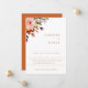 Buquê floral e folhagem outonal rústica em aquarela em tons modernos de laranja, ferrugem e verde. Características, parte de trás em cor de laranja ferrugem e tipografia. Modelo de design moderno minimalista.